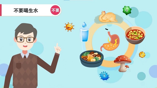 不要喝生水。不喝生水,不喝来源不明或被污染的水;生水应烧开后饮用或选择符合卫生标准的瓶装水、桶装水;自觉保护生活饮用水水源及环境,在指定地点堆放垃圾、倾倒生活污水、排放粪便。
